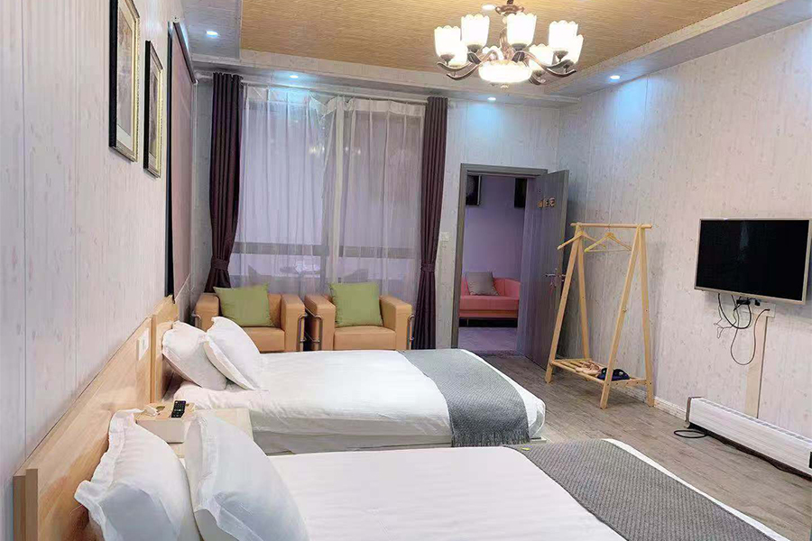 17间房,其中标间10间+大床房2间+三人间4间+套房1间。配置齐全,干净舒适。