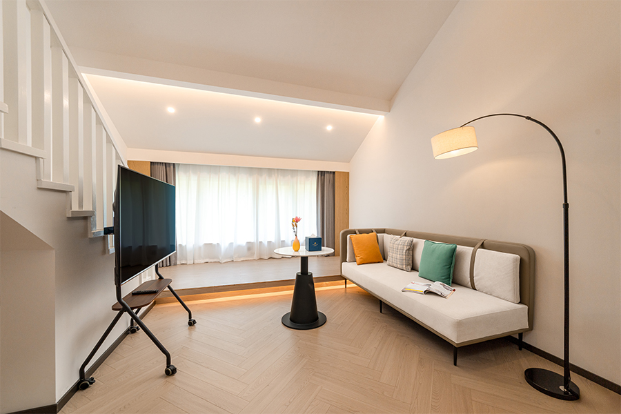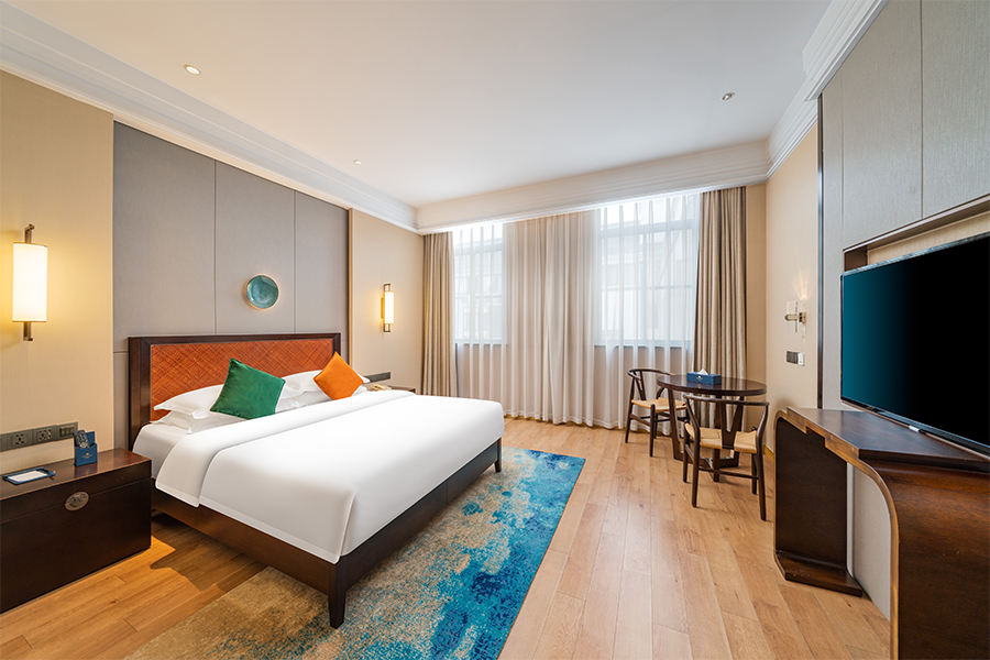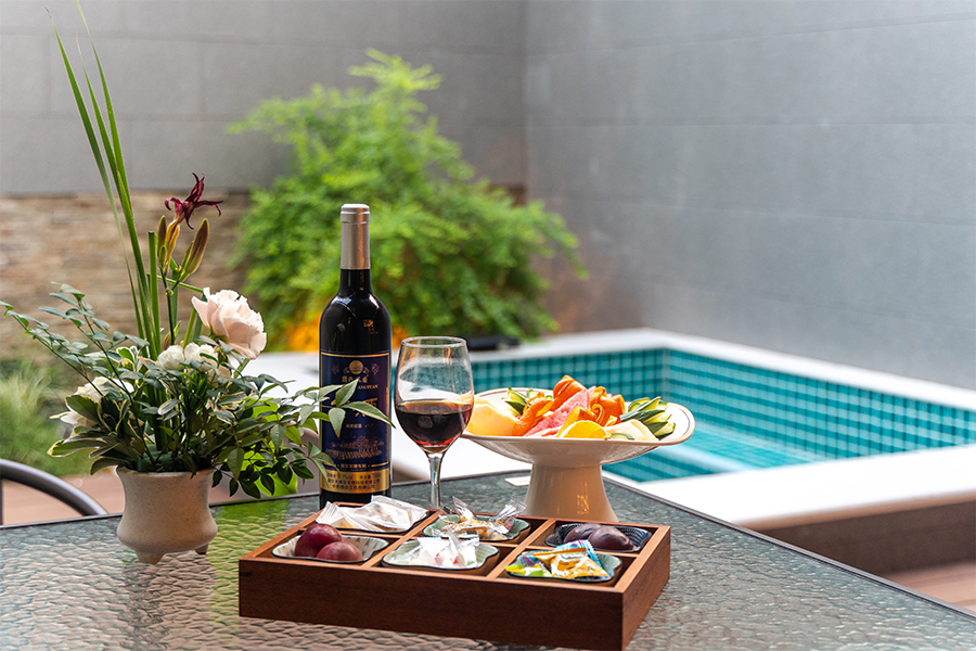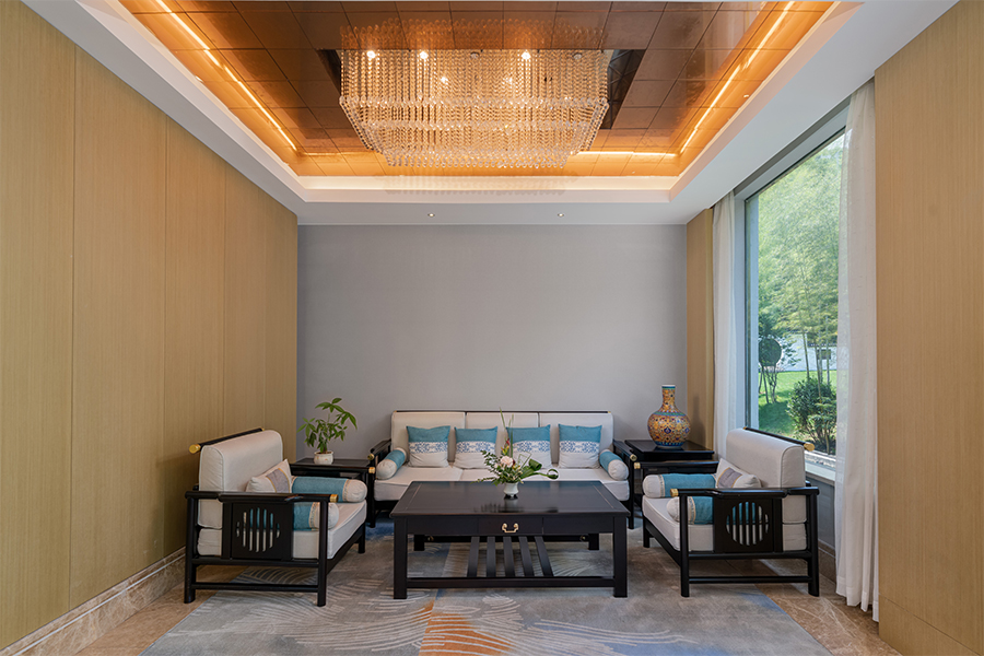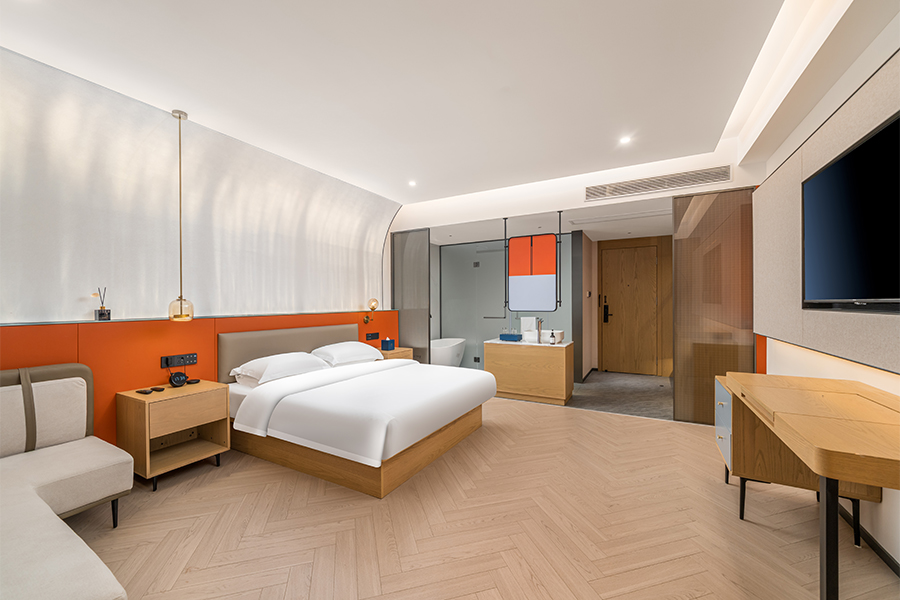 房间内床垫、精织纱的棉织品、考究的家具及灯光、卫浴及智能马桶、保险箱、小冰箱一应俱全,彰显酒店豪华高星级标准。入住的客人可以尽情享用山泉浴,洗出美白肌肤,洗出健康。